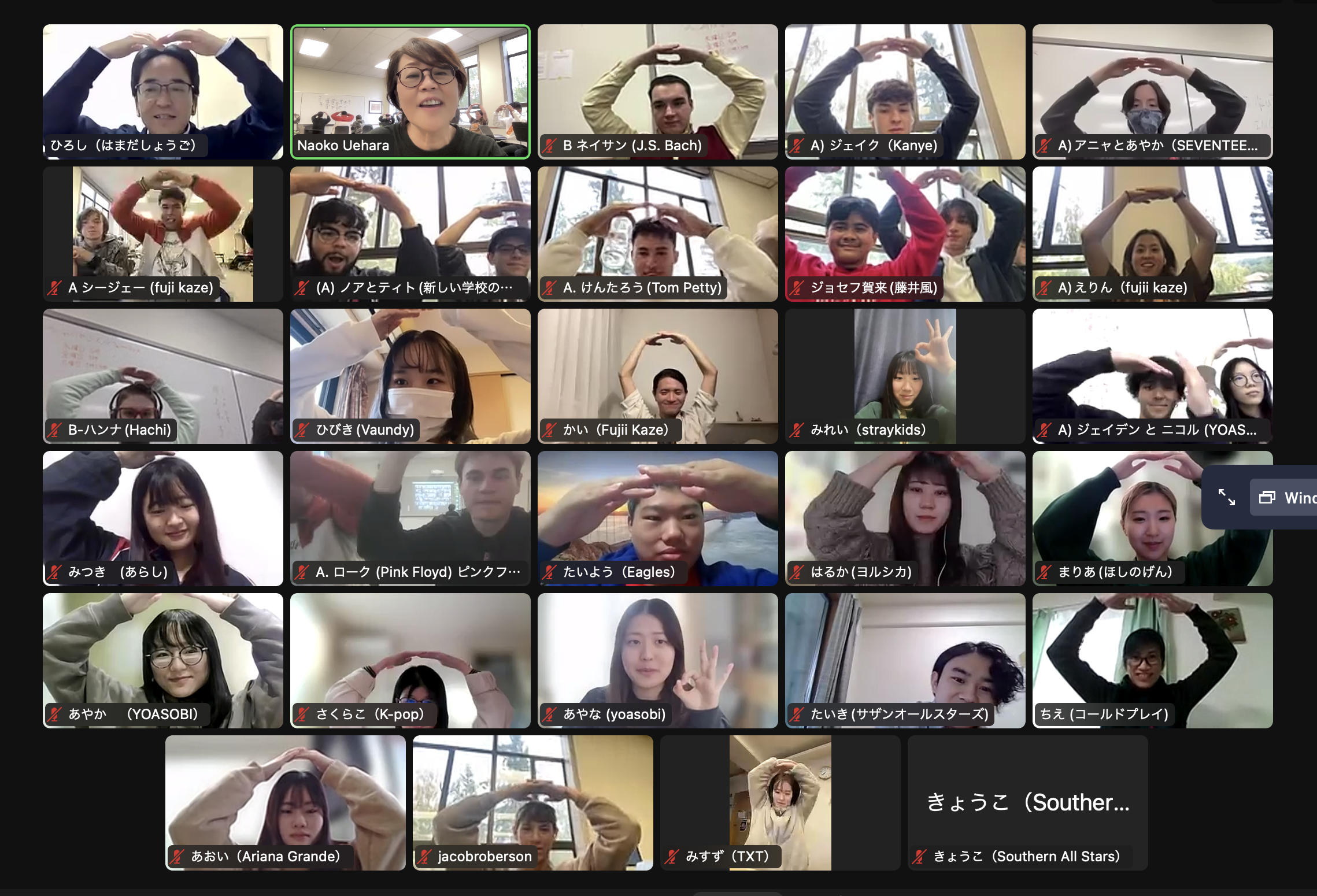 2024年度に続き2025年度も、サンフランシスコにあるセントメアリーズ?カレッジ(SMC)で日本文化や日本語を学んでいる学生と、オンラインで交流しました。SMCの日本文化のクラスと日本語(中級以上レベル)のクラスに本学の学生が参加する形の交流で、本学からは10名が参加、SMCからは18名が参加しました。本学からは海外の協定大学に長期留学中の学生も参加してくれました。